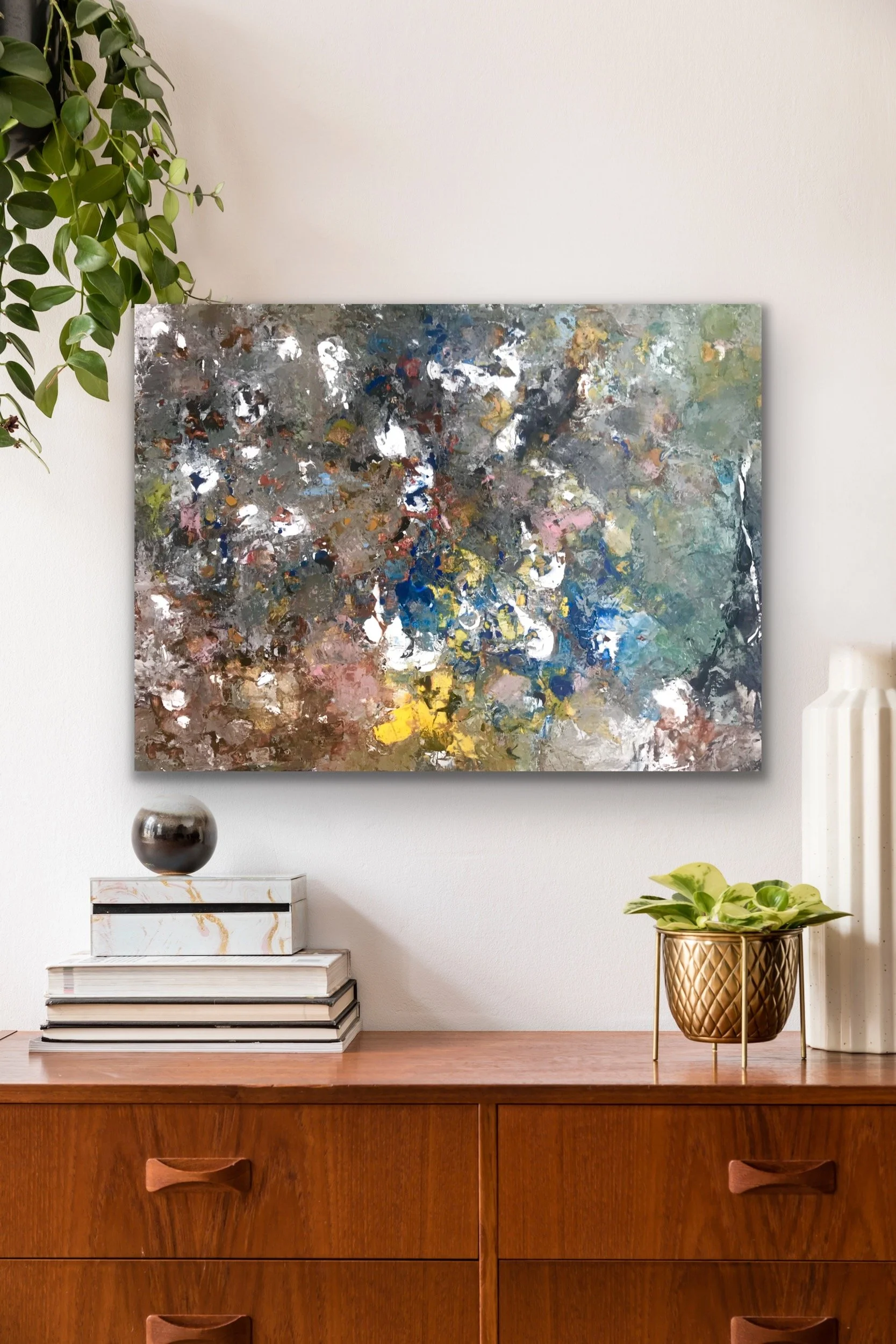 Garden is a blurry representation of a bed of rose colored flowers. It’s a romantic image of nature, It constructs a feeling of rest, solitude, and beauty. 72” x 36”, Wax on canvas covered with resin. Framed. Pick up option only.
